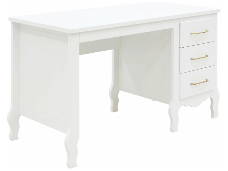 Dit grote Elena bureau van Bopita geeft jouw kind een fijne plek om te tekenen, knutselen en misschien zelfs huiswerk te maken. De kast heeft drie ruime lades om allerlei spulletjes in op te bergen. De lades zijn voorzien van mooie mat goudkleurige handgrepen. Combineer het bureau met andere meubels uit de Elena collectie voor rust en eenheid in de kamer van je kind.