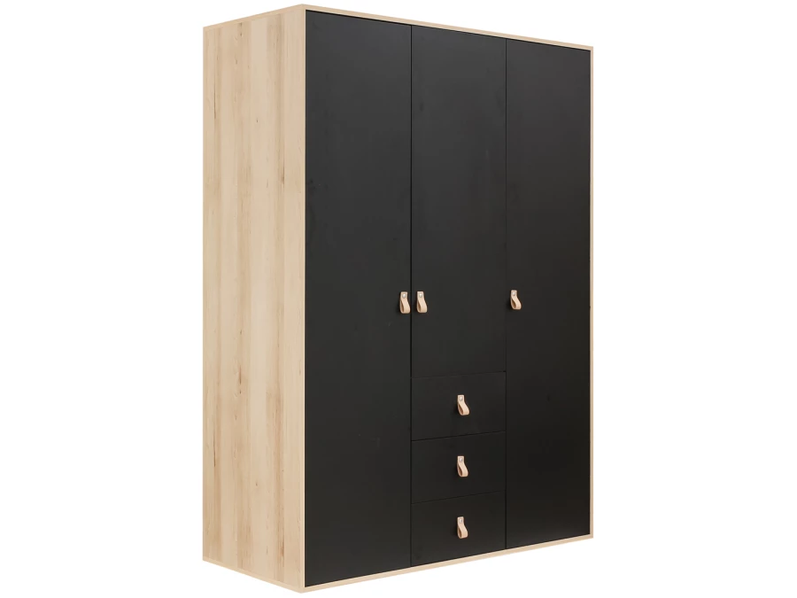 Bopita Lucas 3-deurs kledingkast met lades Mat zwart / Naturel