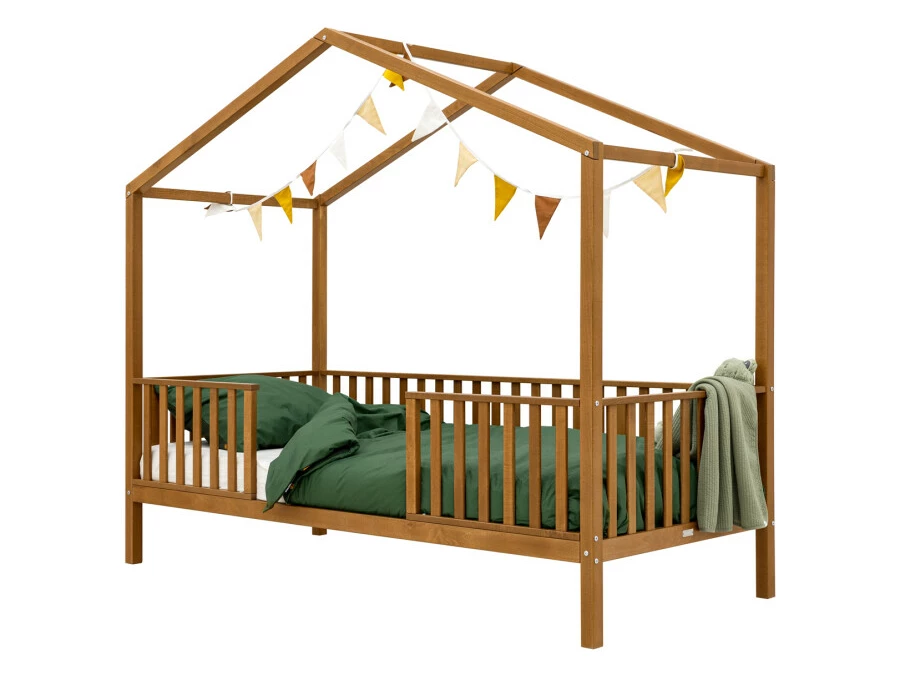 Ontdek het avontuurlijke Bopita Robin huisbed op poten in de kleur Rose Wood. Dit unieke bed is vervaardigd uit robuust beukenhout en afgewerkt met een veilige lak op waterbasis. Het omringende hekje biedt een geruststellende omgeving voor een goede nachtrust, waarbij de twee kleine hekjes afzonderlijk kunnen worden verwijderd voor extra flexibiliteit.
