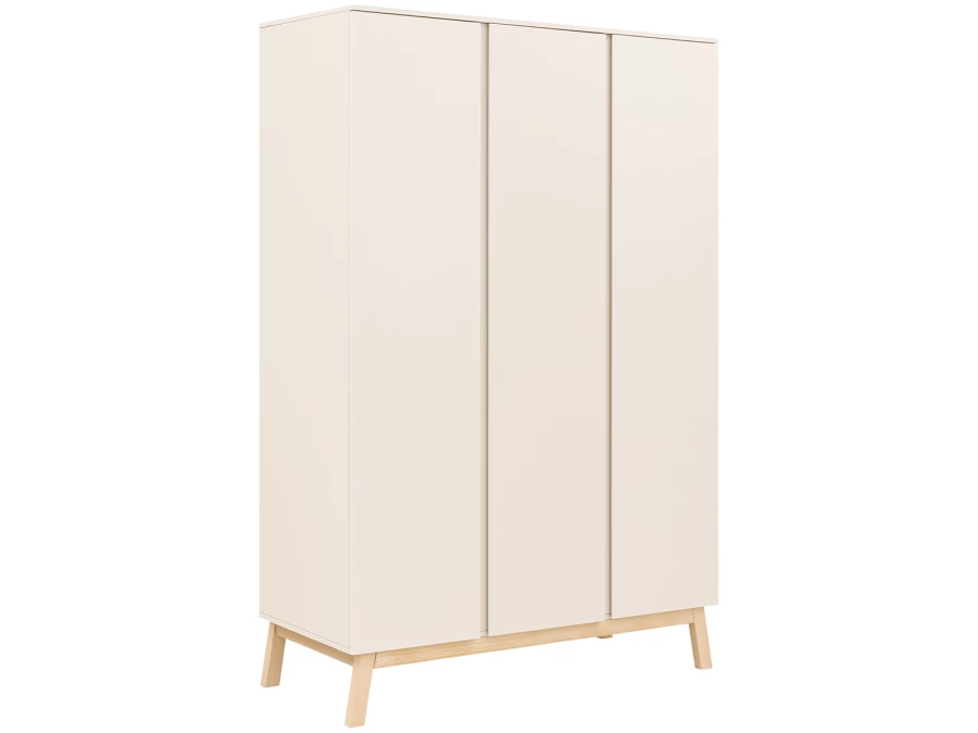 De Bopita Saba 3-deurs kledingkast biedt ruimte en stijl in één. Deze kast staat op stevige, schuingeplaatste beuken poten, wat zijn karakteristieke robuuste uitstraling benadrukt. Zowel de romp als de deuren van deze kast zijn gemaakt van duurzaam MDF.