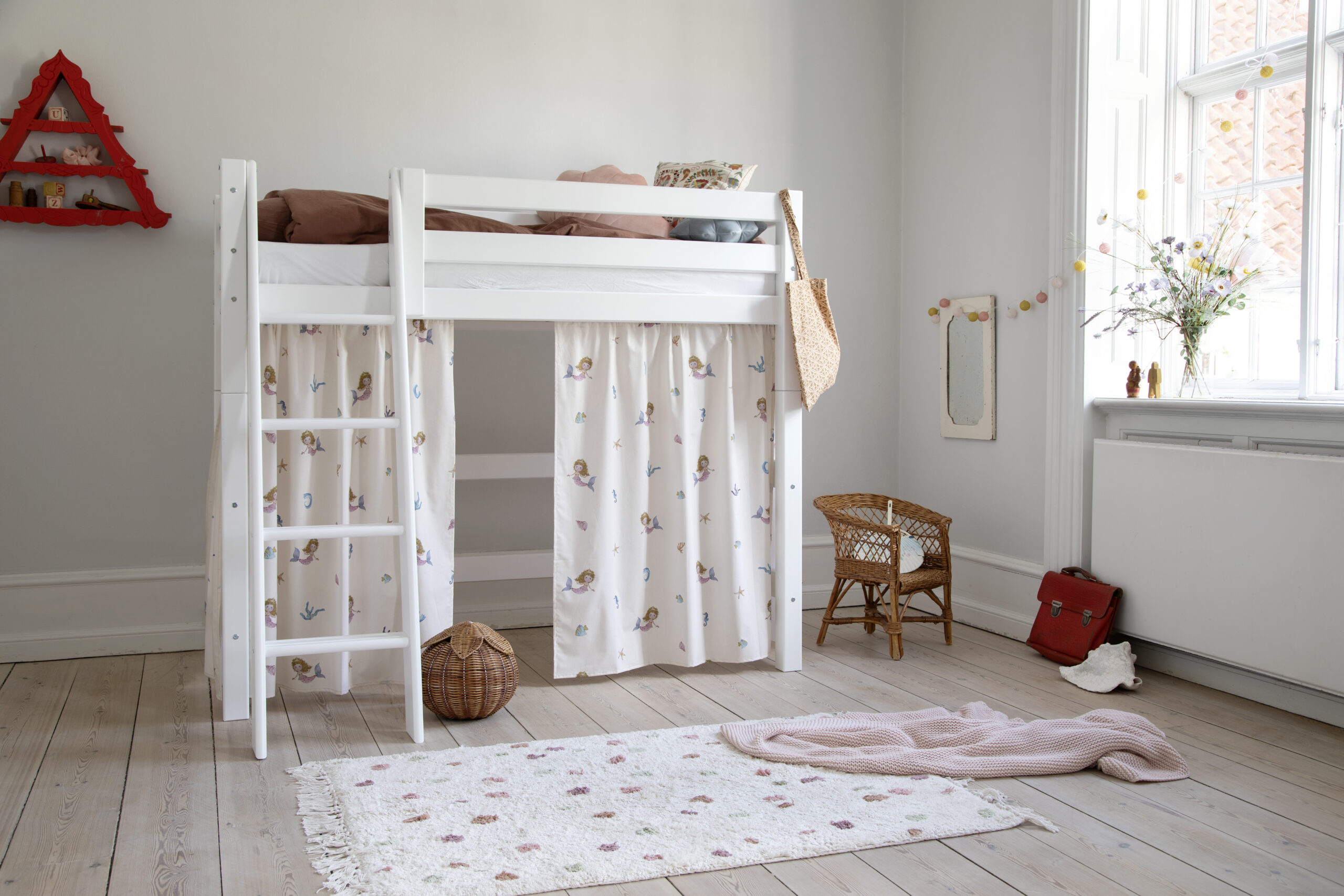 Dit spetterende speelgordijn in het thema Mermaid past op verhoogde halfhoogslapers. Geschikt voor bedden met de matrasmaat 70×160.