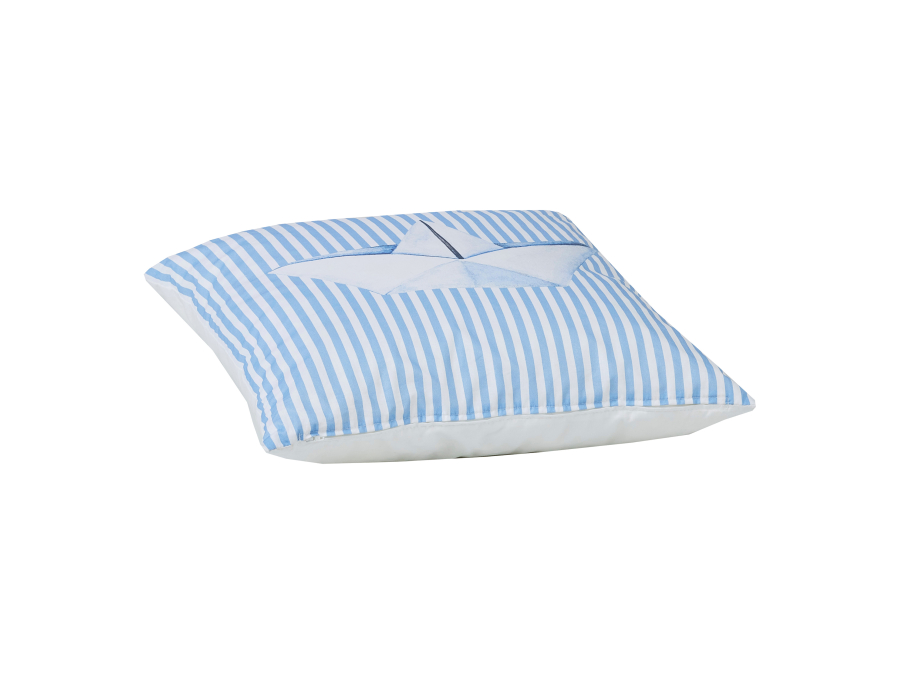 Het zachte kussen uit het Tin Soldier-thema van Hoppekids heeft geweldige strepen en een print van een papieren boot. Het kussen is 50x15x50 cm en is de perfecte accessoire voor de kinderkamer.