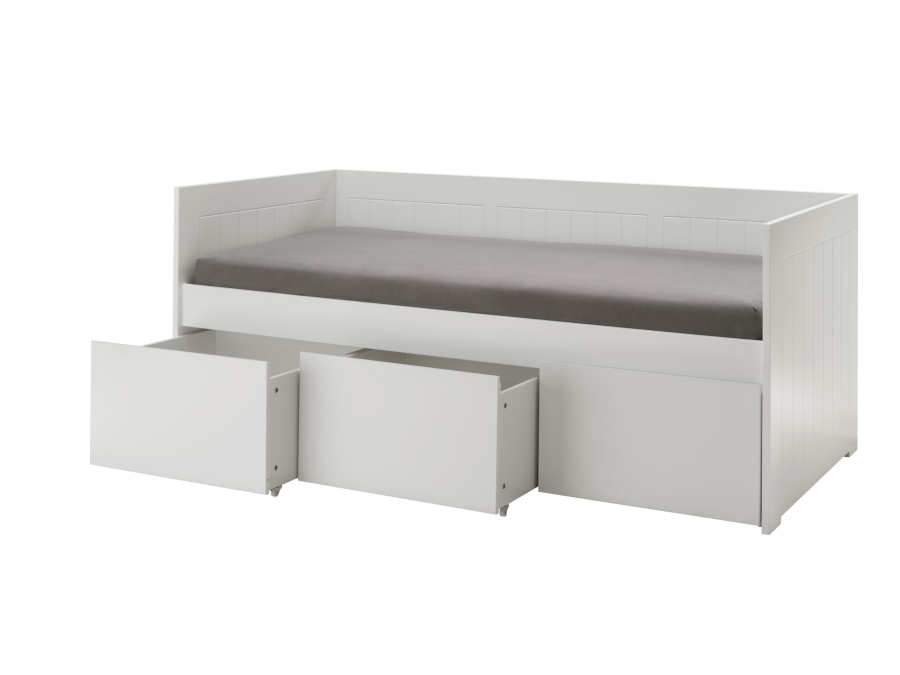 Deze stevige bedbank Emma van Infanskids kenmerkt zich door de strakke afwerking en groeven in het hoofd- en voetenbord. De ruimte onder het bed wordt optimaal benut door drie grote opberglades. Een lattenbodem is inbegrepen en een matras van 90×200 kun je gemakkelijk mee bestellen.Â