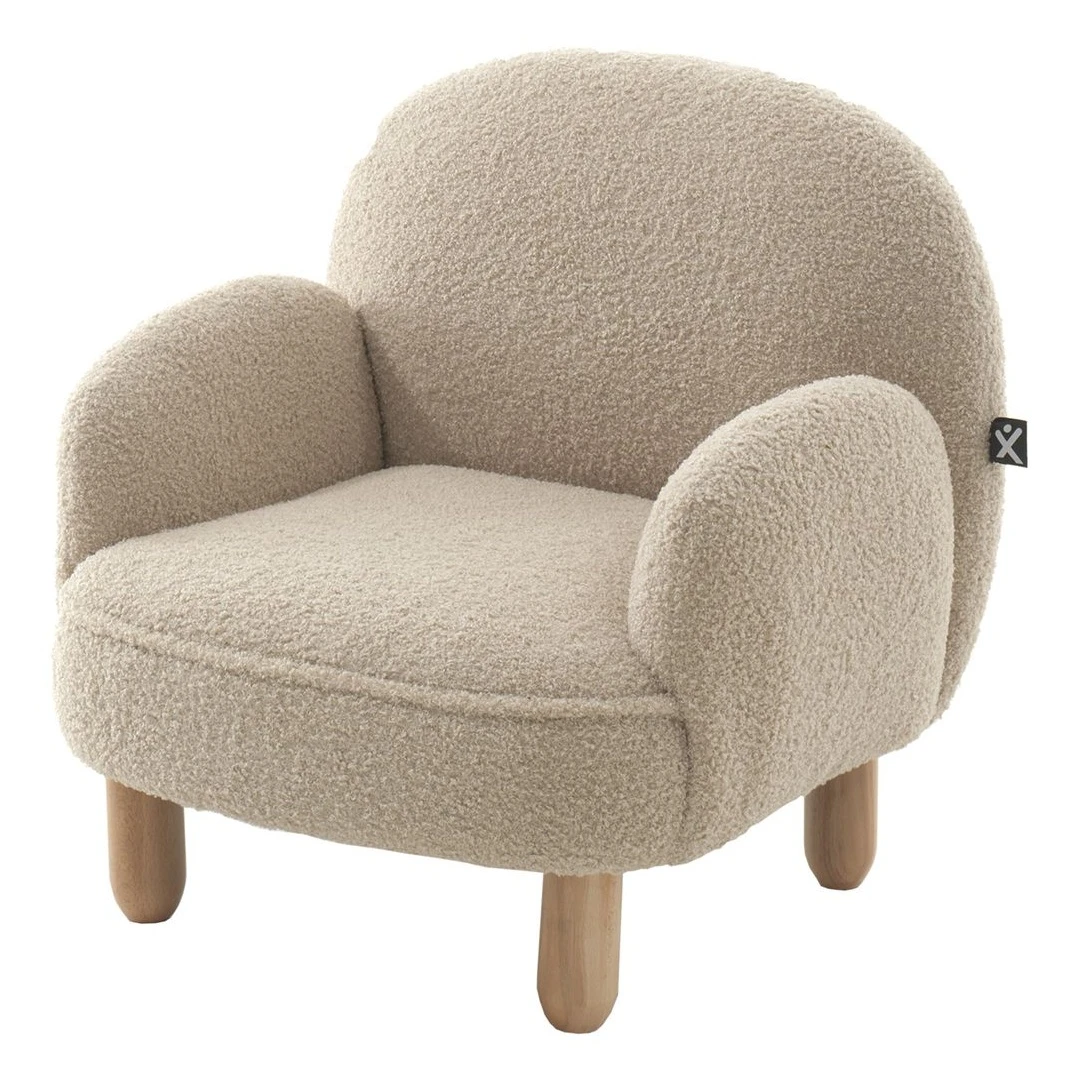 De kinderfauteuil uit de ROCKY collectie in beige bouclé is een perfecte mix van comfort en stijl. Dankzij de zachte stof en de afgeronde vormen voelt het stoeltje warm en uitnodigend aan. Het biedt een knusse plek waar je kindje kan lezen, ontspannen of gewoon even wegdromen. De stevige houten poten geven het stoeltje stabiliteit en een natuurlijke uitstraling. Met zijn charmante design is deze fauteuil een sfeervolle toevoeging aan de baby- of kinderkamer, maar ook een leuke blikvanger in de woonkamer. Zo heeft je kleintje altijd een eigen comfortabele plek.