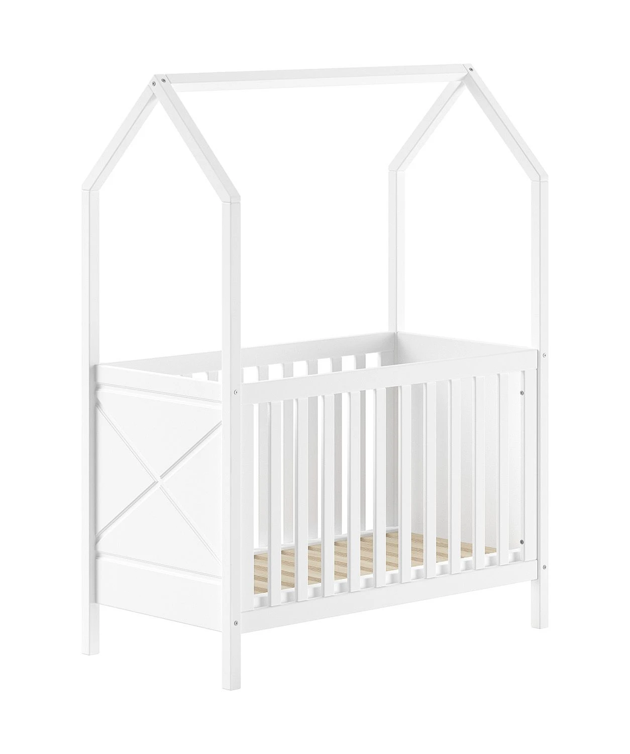 Het Jaxx scott babybed (60 x 120 cm) in wit is vervaardigd uit massief Scandinavisch grenen. De lattenbodem is inclusief en kan op 3 hoogtes versteld worden voor optimaal gebruiksgemak. Het unieke aan dit babybed is dat het beschikt over een speels dakframe. Deze collectie staat bekend om zijn stevige en robuuste constructie.