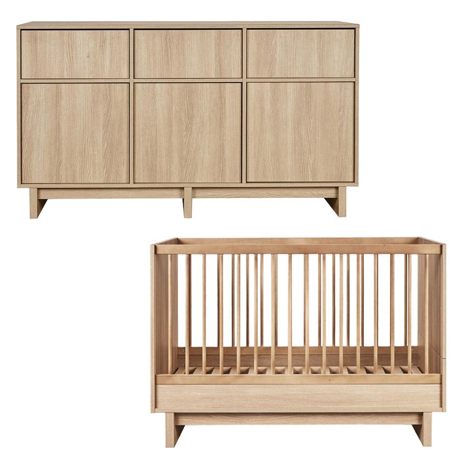 De prachtige Quax Kyo 2-delige babykamer in de kleur Honey Ash bestaat uit een ledikantje van 70×120 en een XL commode. Beide gemaakt uit een mix van massief beuken en melamine.