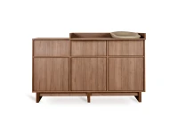 Het bedje heeft een verstelbare bodem met drie verschillende hoogtes. De XL commode is voorzien van drie greeploze laden en drie deuren met push-to-open systeem. Achter de deuren vind je legplanken.