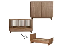De prachtige Quax Kyo 2-delige meegroeikamer in de kleur Walnut bestaat uit een bed van 70×140 en een commode. Beidegemaakt uit een mix van massief beuken en melamine.