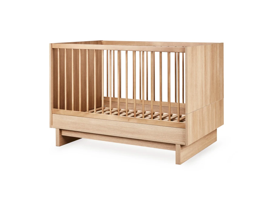 De Quax Kyo collectie in de kleur Honey Ash of Walnut combineert modern minimalisme met warme verfijning. Dankzij de monochrome afwerking – waarbij meubel en pootjes in dezelfde tint zijn uitgevoerd – stralen de meubels rust en harmonie uit, terwijl de natuurlijke houtstructuur zorgt voor een gezellige en tijdloze sfeer in de baby- of kinderkamer.