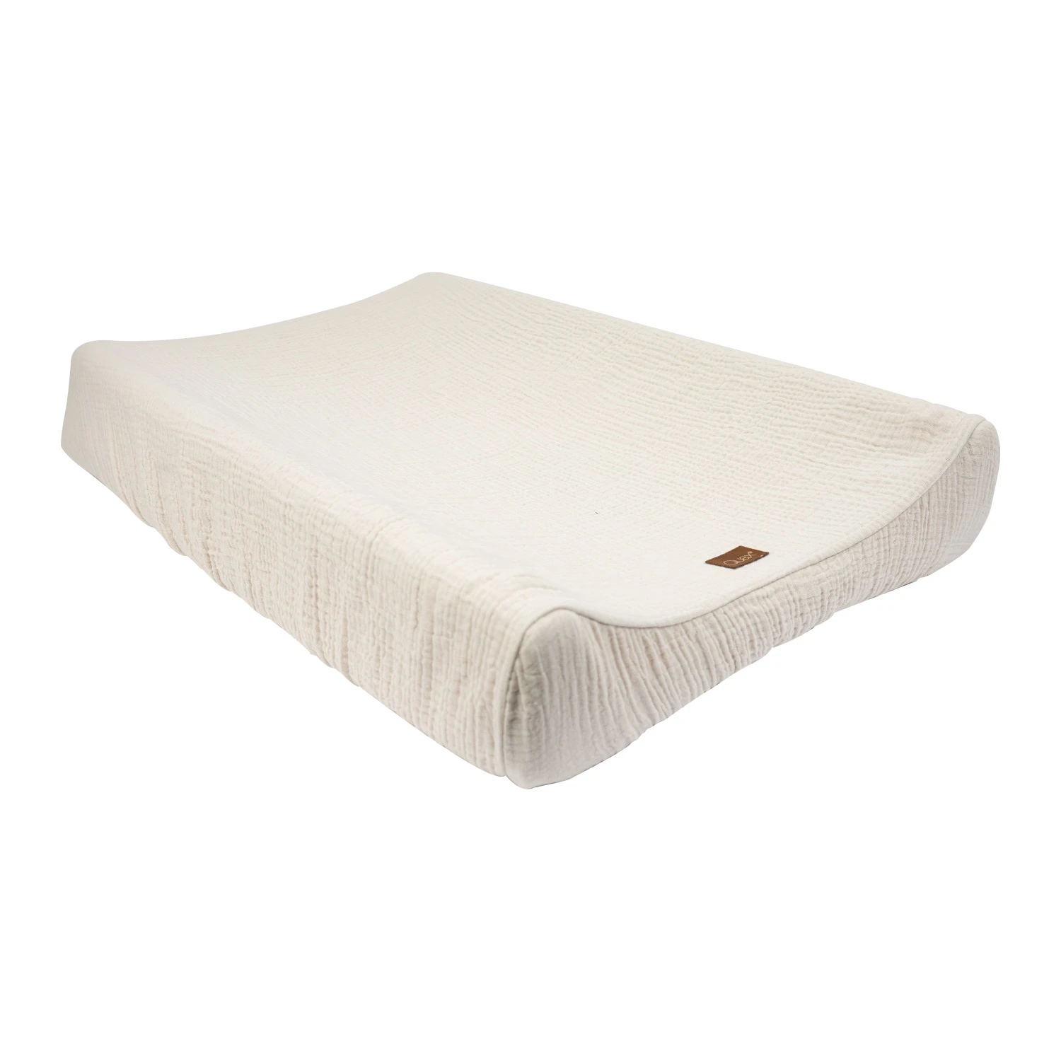 De muslin waskussenhoes uit de Natural Collection biedt een zachte en comfortabele ondergrond tijdens het verschonen. Gemaakt van dubbele muslin stof van 100% katoen, past hij op waskussens van 70 x 50 cm. Verkrijgbaar in de kleuren en prints clay, leaf, blossom en stripes, sluit hij mooi aan bij de andere items uit de collectie. De hoes is wasbaar op 30°C en combineert stijl, zachtheid en praktische gebruiksvriendelijkheid voor elk verschoningsmoment.