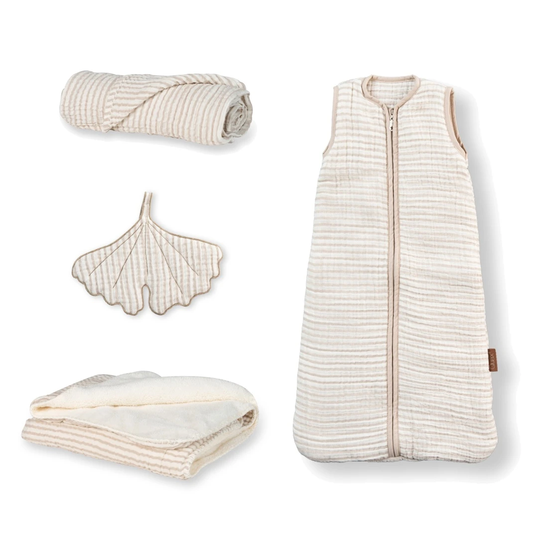 Dit pakket bestaat uit een speendoekje, XL hydrofiele doek, newborn blanket en een slaapzakje. Zo kun je voordelig de musthaves voor jouw kleintje in huis halen.
