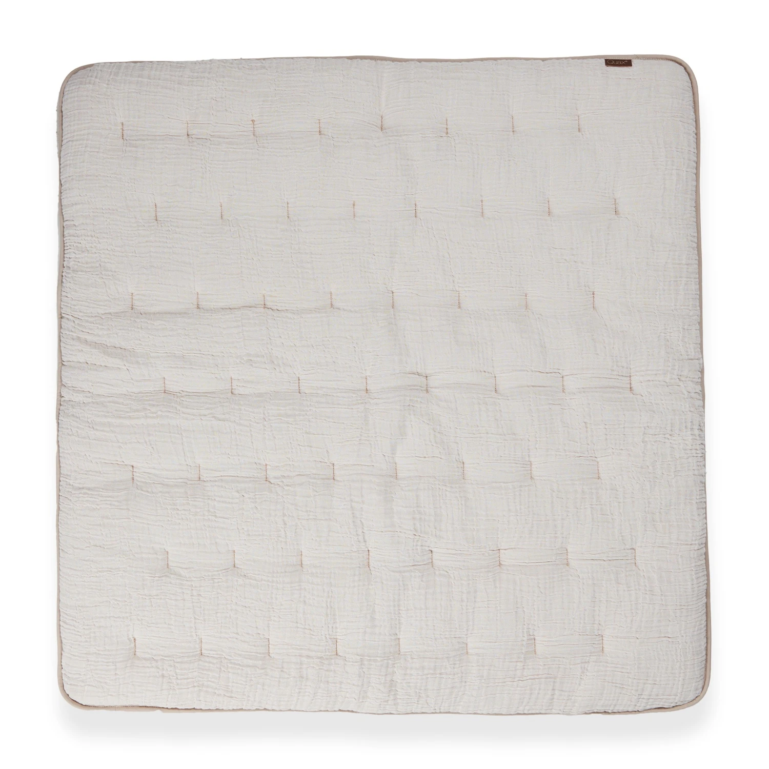 Het muslin speeltapijt uit de Natural Collection biedt een zachte en rustgevende plek voor je kleintje om te spelen en te ontspannen. Gemaakt van 100% katoen met een lichte vulling, voelt het heerlijk comfortabel aan. Verkrijgbaar in de kleuren clay, blossom, leaf en stripes, past het met zijn natuurlijke tinten moeiteloos in elk interieur. Met een afmeting van 100 x 100 cm biedt het tapijt genoeg ruimte voor spel en ontdekking. Het quilted ontwerp behoudt zijn vorm en de stof is wasbaar op 30°C, wat het speeltapijt zowel praktisch als stijlvol maakt.