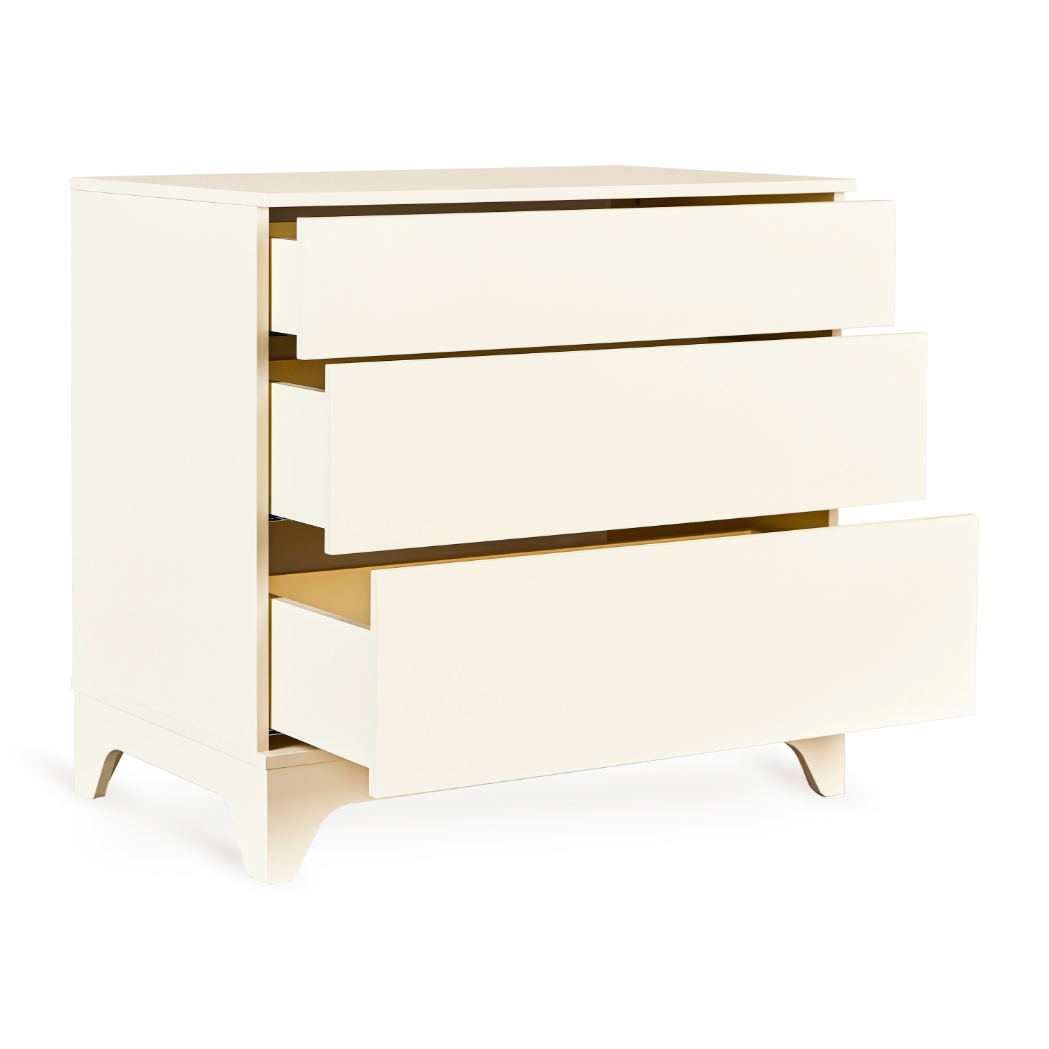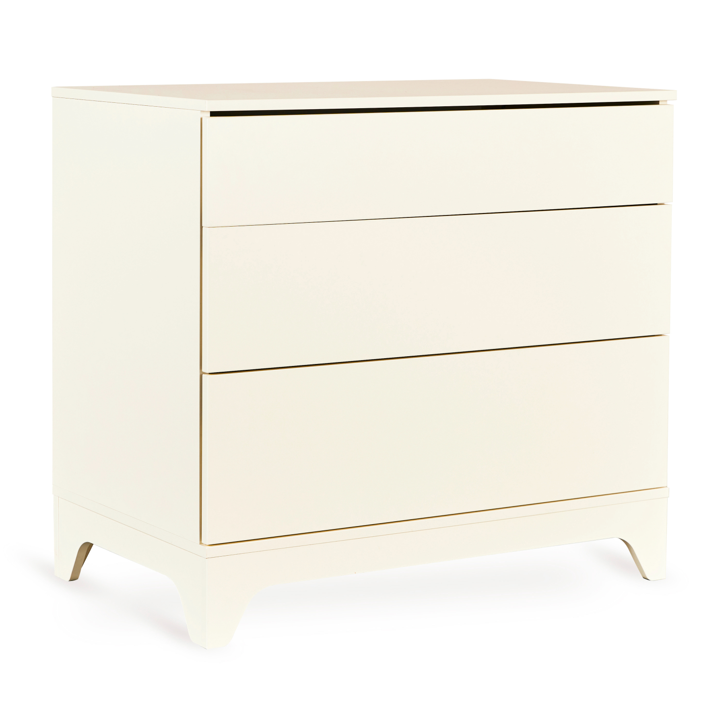De commode beschikt over drie greeploze laden met een push-to-open systeem. Dit zorgt voor een strakke, moderne uitstraling en biedt tegelijk ruime opbergmogelijkheden voor kleding, verzorgingsspullen en accessoires. Zo heb je altijd alles overzichtelijk en binnen handbereik.