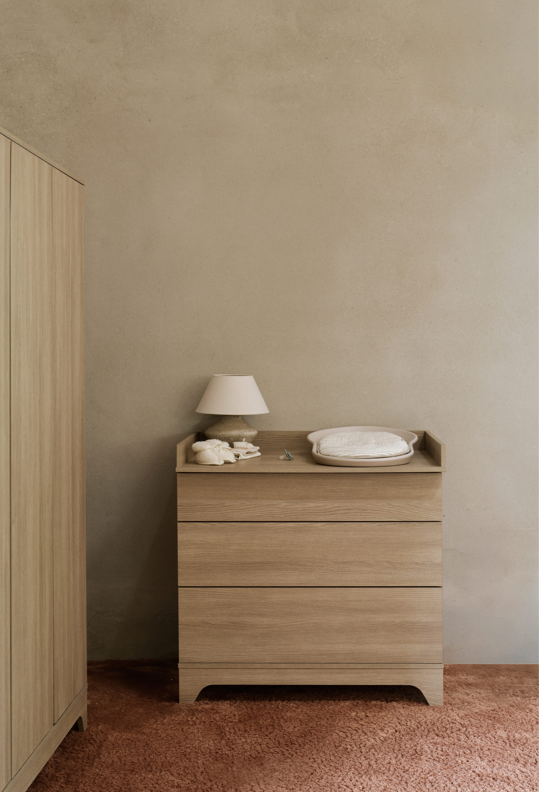 De Quax Tsugi commode in de warme kleur Honey Ash brengt elegantie en functionaliteit samen in een minimalistisch design. Het monochrome geheel – waarbij kast en poten in dezelfde tint zijn uitgevoerd – straalt rust en verfijning uit en past moeiteloos in iedere baby- of kinderkamer.
