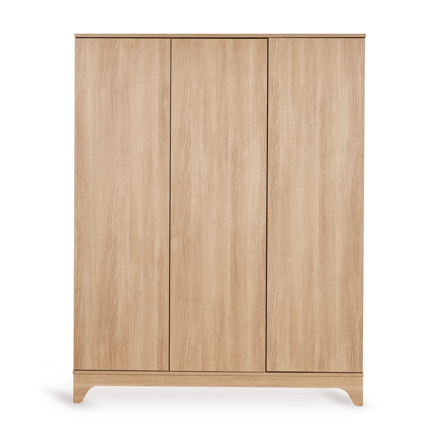 De Quax Tsugi 3-deurs XL kledingkast in de warme kleur Honey Ash biedt royale opbergruimte in een strak en minimalistisch design. Het monochrome uiterlijk – waarbij kast en pootjes in dezelfde tint zijn uitgevoerd – zorgt voor een harmonieus geheel dat zowel elegant als tijdloos oogt. De kast is vervaardigd uit meubelplaat met melamine, wat stevigheid en duurzaamheid garandeert.