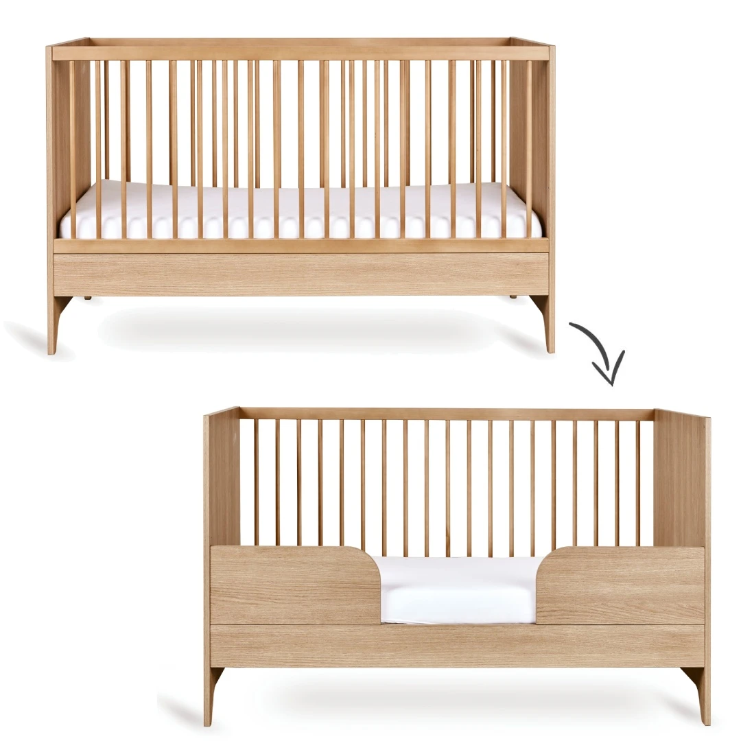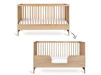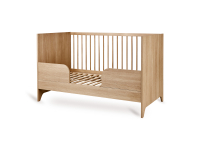 Een bijzonder praktisch detail is dat één spijlenzijde verwijderd kan worden. Hierdoor verandert het bedje moeiteloos in een peuterbed, zodat je er nog langer plezier van hebt en je kind stap voor stap veilig kan wennen aan zelfstandig slapen.