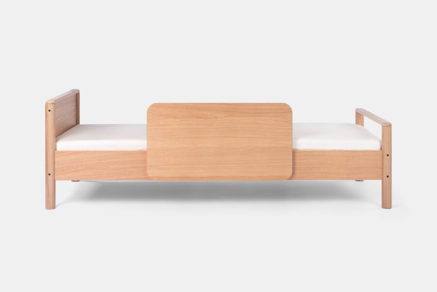 Je kunt het bed optioneel uitbreiden met verschillende handige accessoires: een bedplank die aan het hoofdeinde bevestigd kan worden, een metalen hangplankje voor aan de bedrand, en een bijpassende uitvalbeschermer voor extra veiligheid.Â