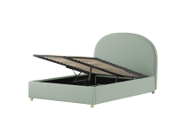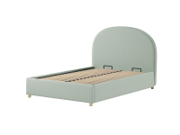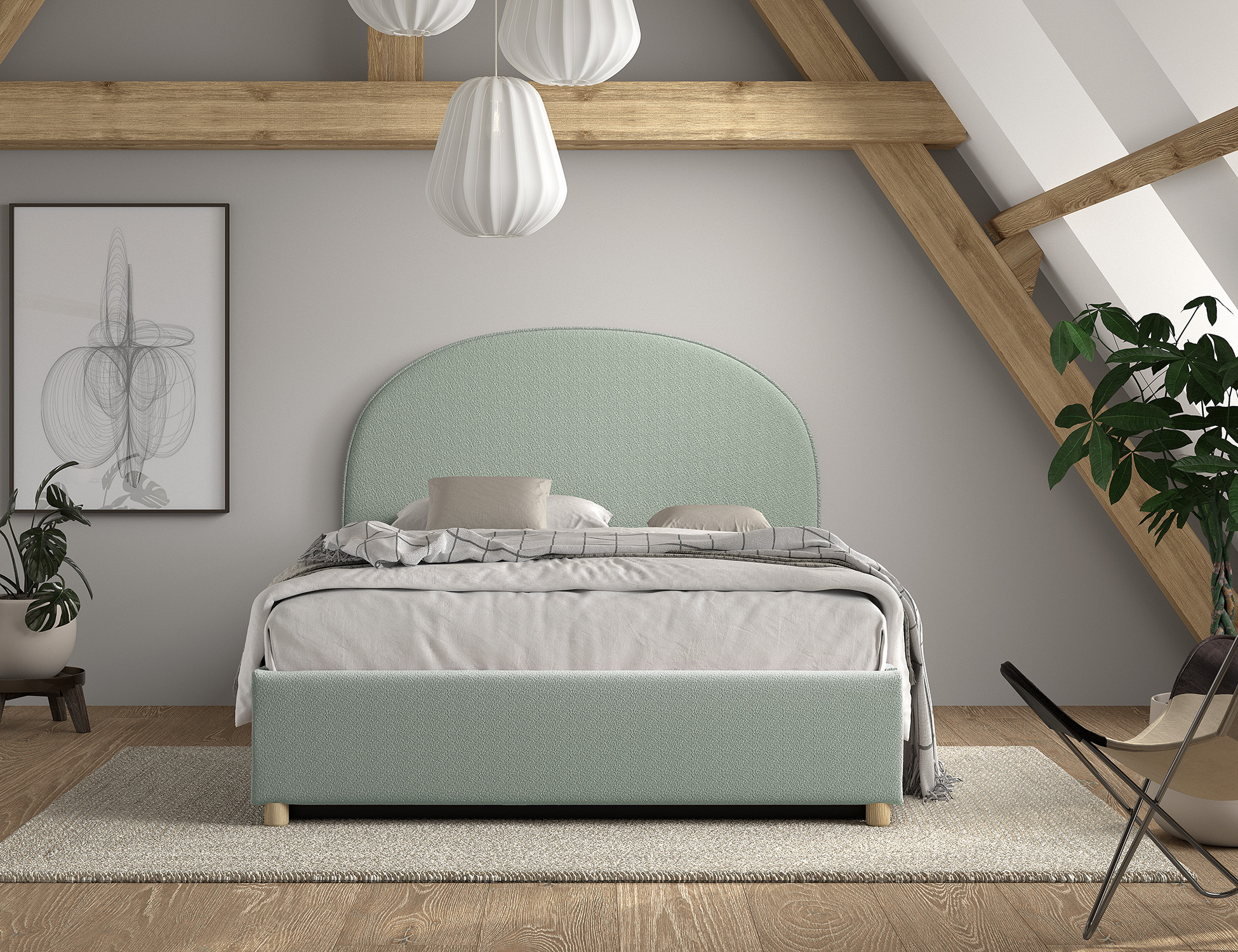 Het MOON bed met een matrasmaat van 140 x 200 cm is bekleed met luxe groene bouclé. Het afgeronde hoofdbord geeft het bed een warme en gezellige uitstraling. Dankzij de zachte stof voelt het bovendien comfortabel en sfeervol aan. Onder het bed bevindt zich praktische opbergruimte, bereikbaar door de lattenbodem en het matras eenvoudig omhoog te tillen met een lint. De MOON collectie past in vrijwel elk interieur en laat zich moeiteloos combineren.