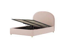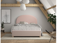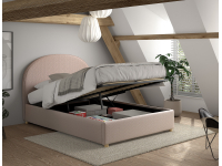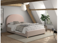 Het MOON bed met een matrasmaat van 140 x 200 cm is bekleed met luxe roze bouclé. Het afgeronde hoofdbord geeft het bed een warme en gezellige uitstraling. Dankzij de zachte stof voelt het bovendien comfortabel en sfeervol aan. Onder het bed bevindt zich praktische opbergruimte, bereikbaar door de lattenbodem en het matras eenvoudig omhoog te tillen met een lint. De MOON collectie past in vrijwel elk interieur en laat zich moeiteloos combineren.