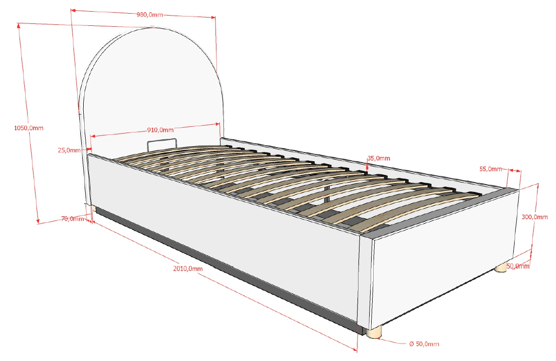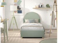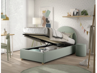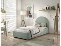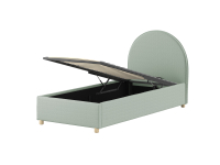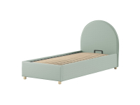 Het MOON bed met een matrasmaat van 90 x 200 cm is bekleed met luxe groene bouclé. Het afgeronde hoofdbord geeft het bed een warme en gezellige uitstraling. Dankzij de zachte stof voelt het bovendien comfortabel en sfeervol aan. Onder het bed bevindt zich praktische opbergruimte, bereikbaar door de lattenbodem en het matras eenvoudig omhoog te tillen met een lint. De MOON collectie past in vrijwel elk interieur en laat zich moeiteloos combineren.