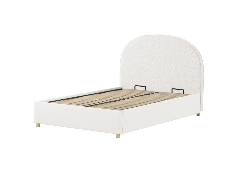 De meubels zijn bekleed met bouclé. Een bobbelige stof die er heerlijk aaibaar en zacht uitziet. Het geeft de meubels een luxe en tegelijkertijd rustgevende uitstraling.