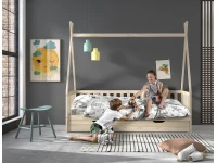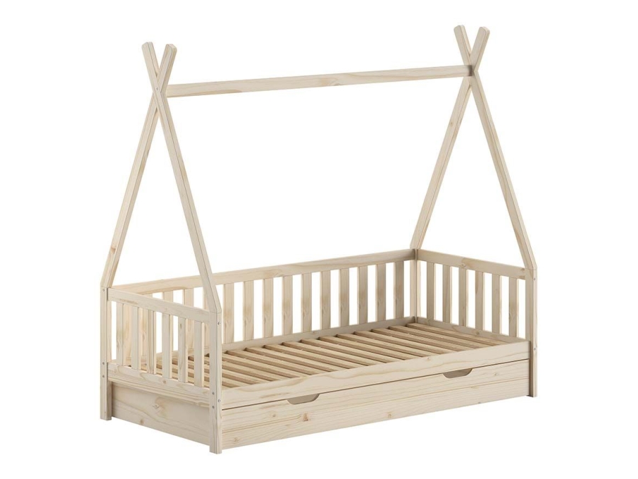 Dit super leuke Vipack Tipi bed heeft een hek aan de achterkant en kopse kanten. Dit geeft het niet alleen een leuke uitstraling, het zorgt er ook voor dat jouw kleine minder snel uit bed rolt. Ook kan het hierdoor als bedbank gebruikt worden. Het bed is gemaakt van sterk Scandinavisch grenenhout en afgewerkt met milieuvriendelijke lak. De lattenbodem is inbegrepen en een matras (90×200) kun je gemakkelijk mee bestellen. Ook zijn er lades beschikbaar zodat je een logeerplek of opbergruimte kunt creëren.