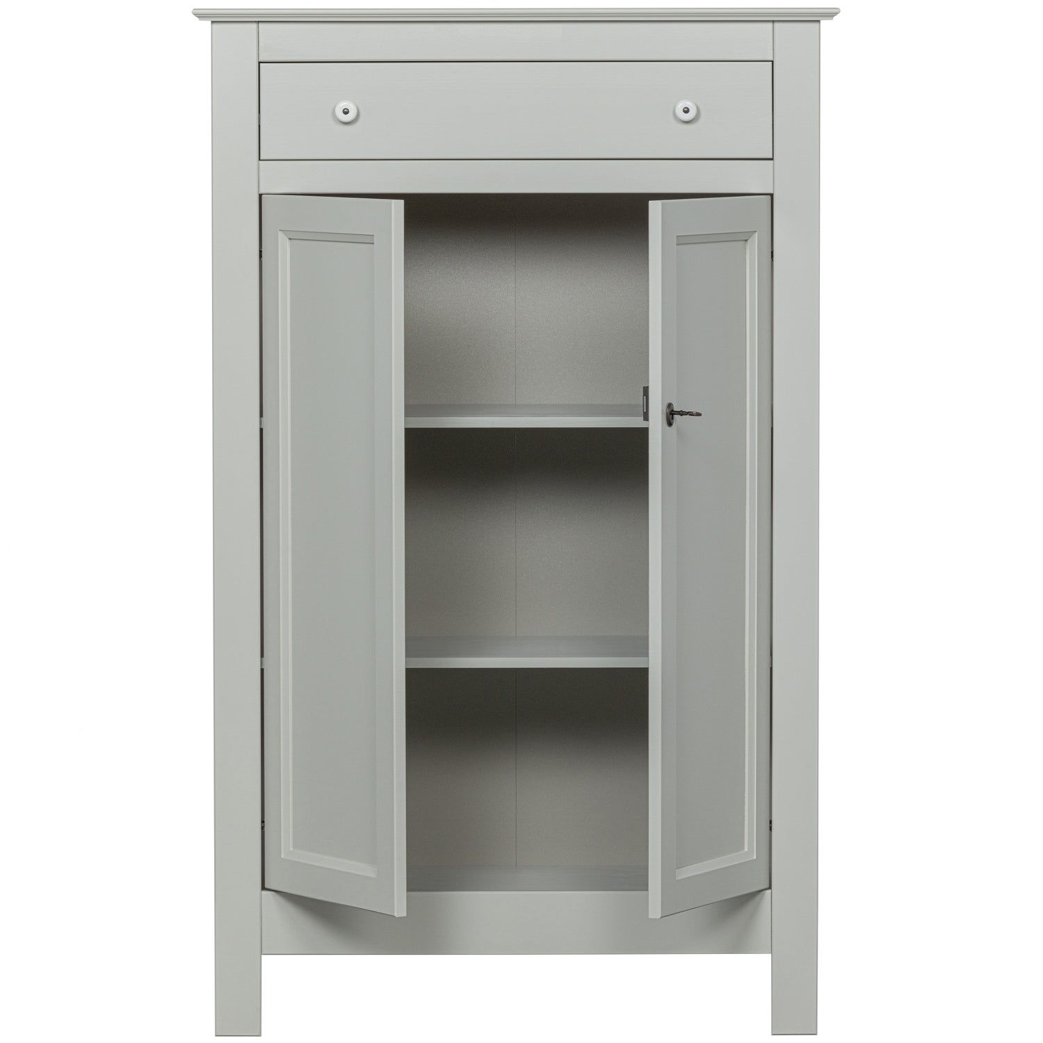 De kast is vervaardigd uit FSC-gecertificeerd grenenhout met een gladgeschuurde afwerking en een matte coating, wat zorgt voor een rustige en stijlvolle uitstraling.